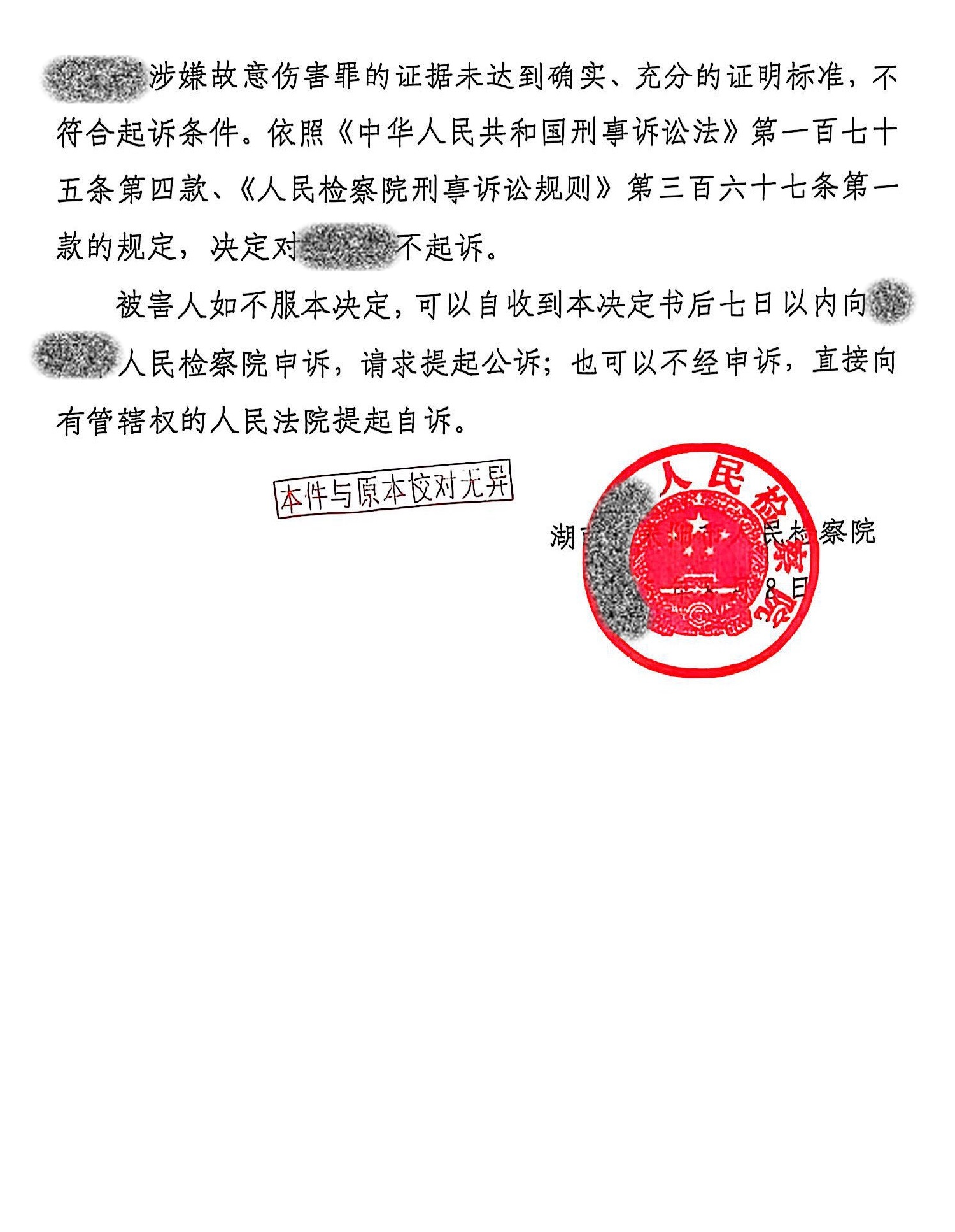 这是一个含金量非常高的存疑不诉成功案例,这个案件的被告人前期已经被批捕且被起诉到了法院。之后家属联系到李扬律师,安排团队张甜律师介入辩护,安世坤律师协助,*终检察院采纳律师意见,认为无法确认伤情就是被告人造成的。在所谓被害人一直控告施压和各种找关系协调的情况下,坚持召开听证会并做出了存疑不诉的意见。